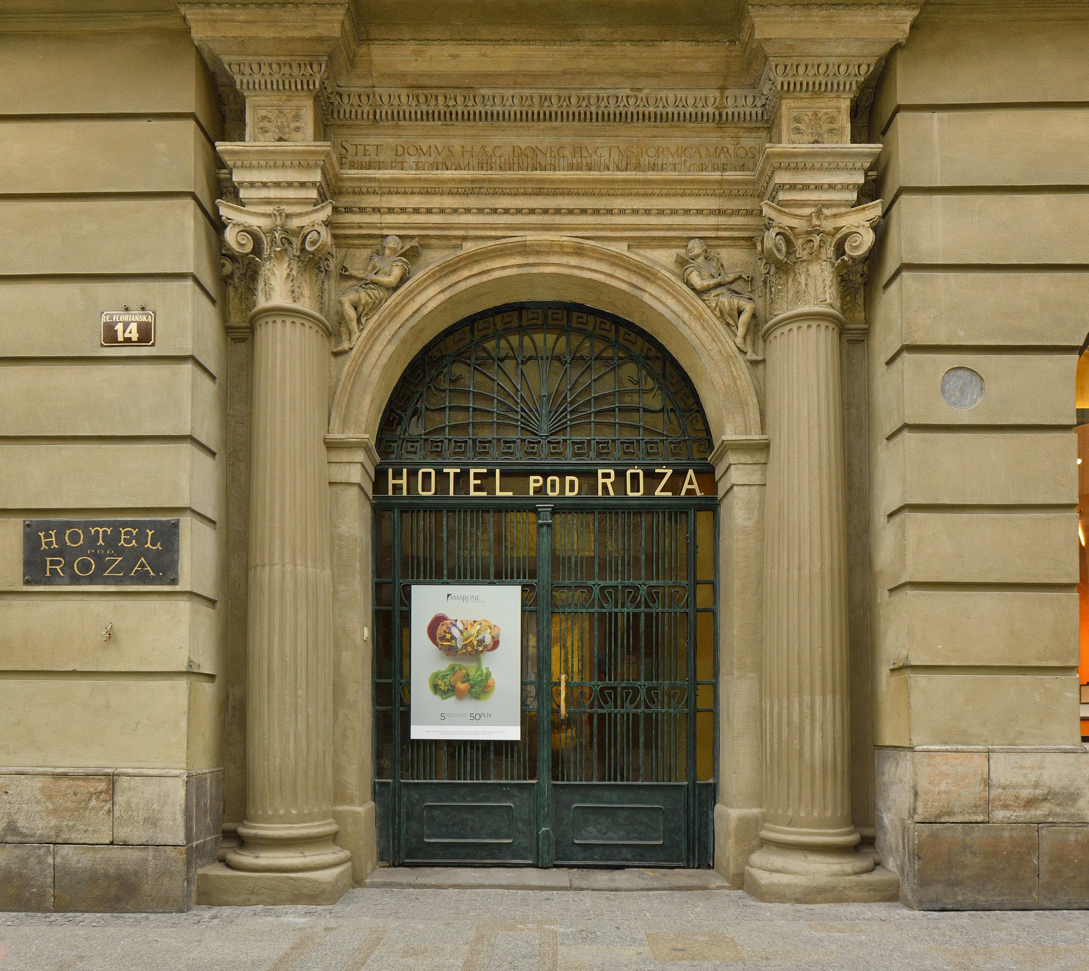 Hotel Pod Różą to najstarszy hotel w Krakowie. Od XVII wieku przyjmuje najznamienitszych gości. Zatrzymywali się tu, między innymi, car rosyjski Aleksander I, wielki książę Konstanty, poseł perski do Napoleona – Mohamed Riza, Franciszek Liszt i Honoré de Balzac. Pod szklanym dachem, na dawnym pałacowym dziedzińcu, działają dwie eleganckie restauracje: Restauracja Pod Różą oraz Ristorante Amarone.
