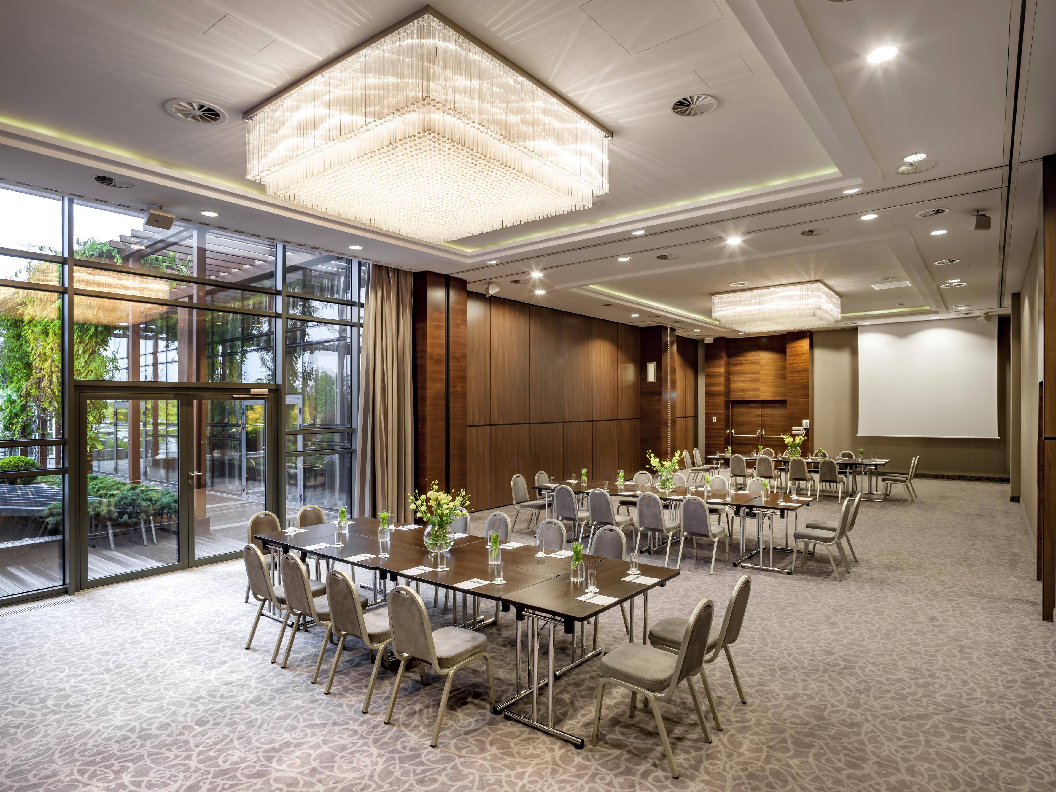 Do dyspozycji organizatorów jest Sala Kongresowa na 1200 osób, 32 w pełni wyposażone sale konferencyjne (łączna pojemność: 2370 osób), VIP Room, a także 1600 m² powierzchni eventowej na jednym poziomie – idealnej do budowy stoisk targowych i organizacji prezentacji produktowych. Hotel zapewnia zakwaterowanie dla 700 osób, zaplecze gastronomiczne w trzech restauracjach, nowoczesny Club 77, Aqua Park, orientalne SHU SPA, strefy relaksu i rekreacji na 14 ha zielonego terenu.